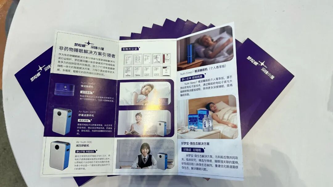 展区内除了有序陈列着在往届进博会期间的“明星产品”以及在第八届进博会上刚刚完成全球首发首秀的新品——Nutrisleep7慢波睡眠机好梦官·微生态整体解决方案,还在各处放置了产品手册与折页,并在四周的展墙上清晰展示了企业简介、发展历程以及30余项国际专利等详细信息,集中呈现品牌在睡眠科技领域持续的突破的同时,也让来到这里参观的观众从全方位、多角度地直观了解梦陀螺深睡小屋的技术实力与积淀。