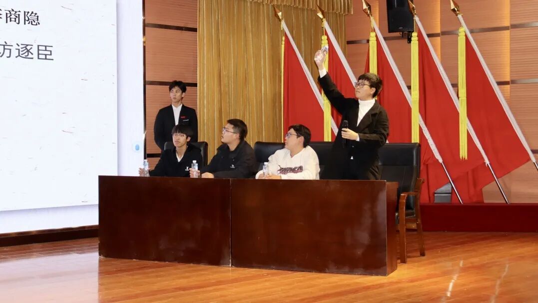为进一步弘扬中华优秀传统文化,丰富同学们的精神世界,通过以大赛促进学风建设的形式,培养同学们学习中华经典诗词的热情。11月20日,智能制造学院在图书馆101报告厅举办2024年诗词大赛决赛,参加此次活动的有智能制造学院党总支副书记张福宽、辅导员徐慧泽、于欢、孟璐、卢萧同以及大一、大二部分学生。