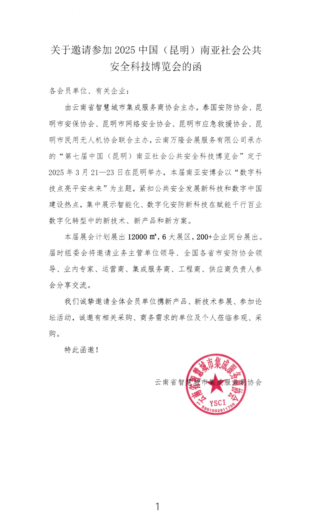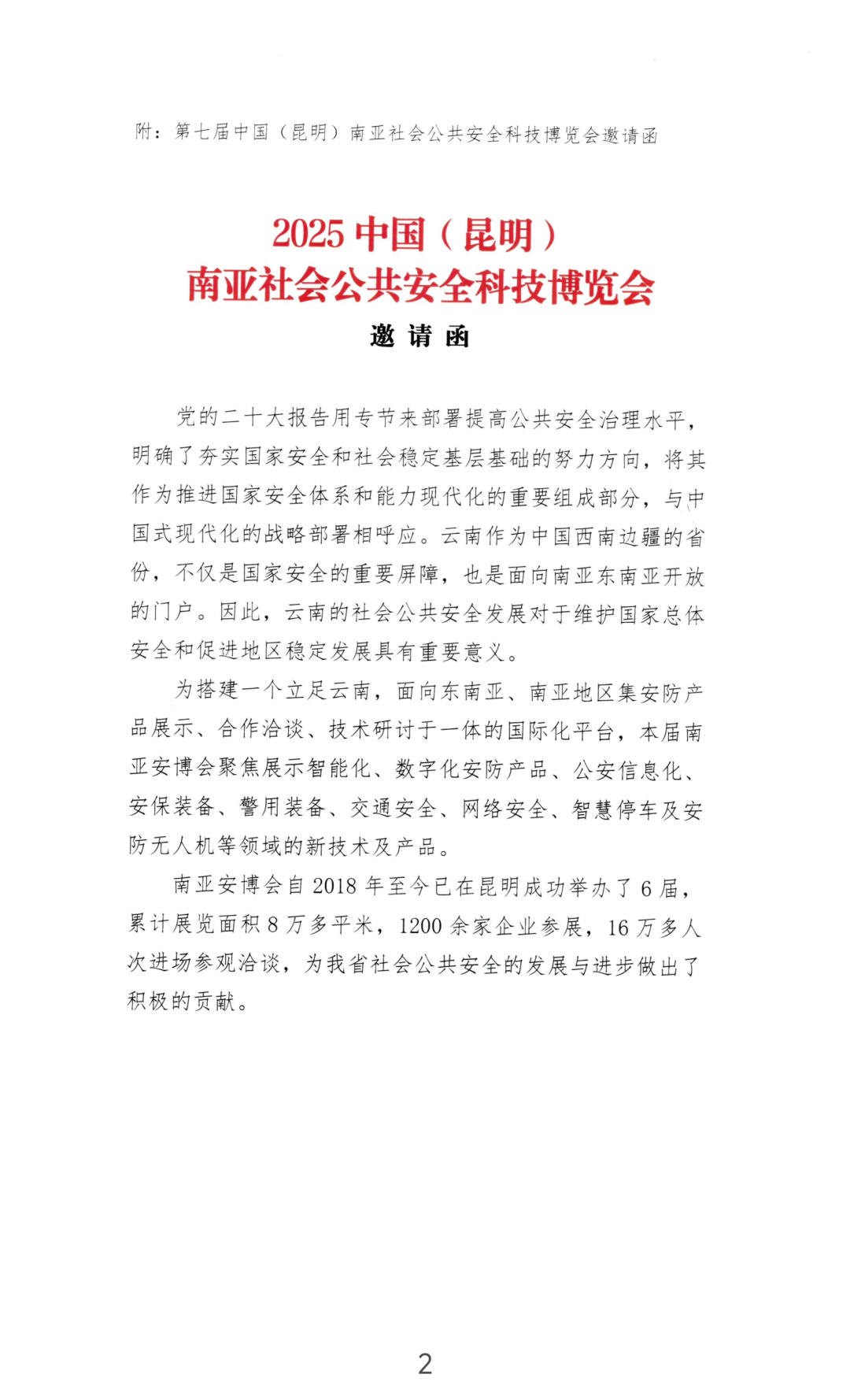 附:第七届中国(昆明)南亚社会公共安全科技博览会邀请函