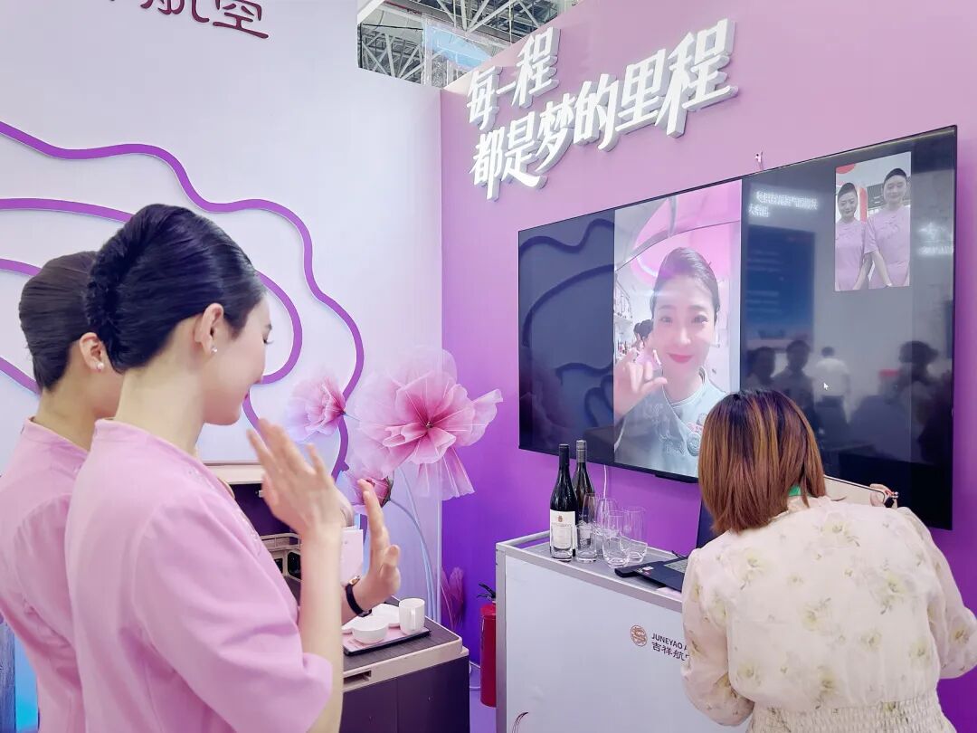 值得一提的是,航展期间,乘坐吉祥航空787 梦想客机的乘客,可在空中通过空地互联Wi-Fi门户观看珠海航展直播,同时,空地互联将在航展现场通过屏幕展示万米高空中的客舱情况,实现空中与地面的相互观测,充分向观众展现了空地互联技术为飞行带来的便捷与魅力。