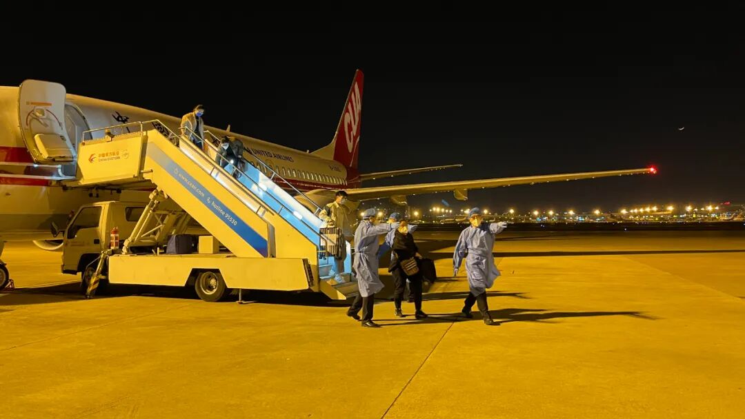 4月3日晚22:44分,中国东航旗下中国联合航空承运河南省人民医院援沪医疗队员,从北京大兴机场飞抵上海虹桥。