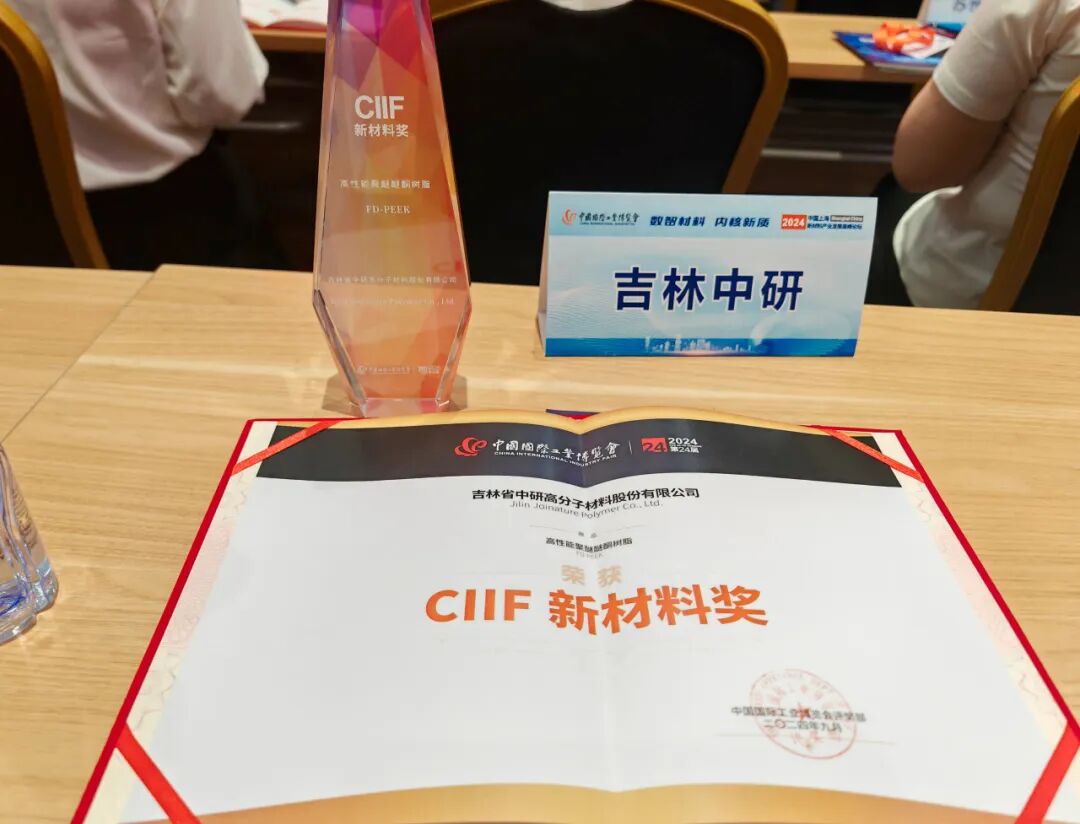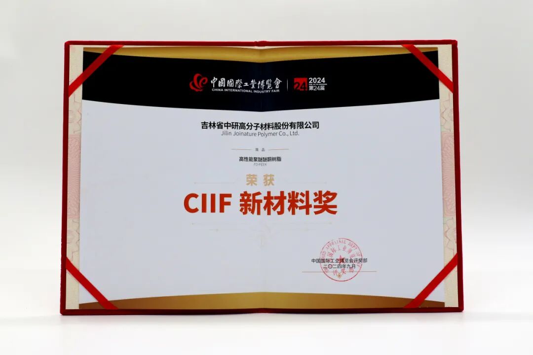 在本次展会中,中研股份荣获展会组委会颁发的高性能聚醚醚酮树脂CIIF新材料奖。
