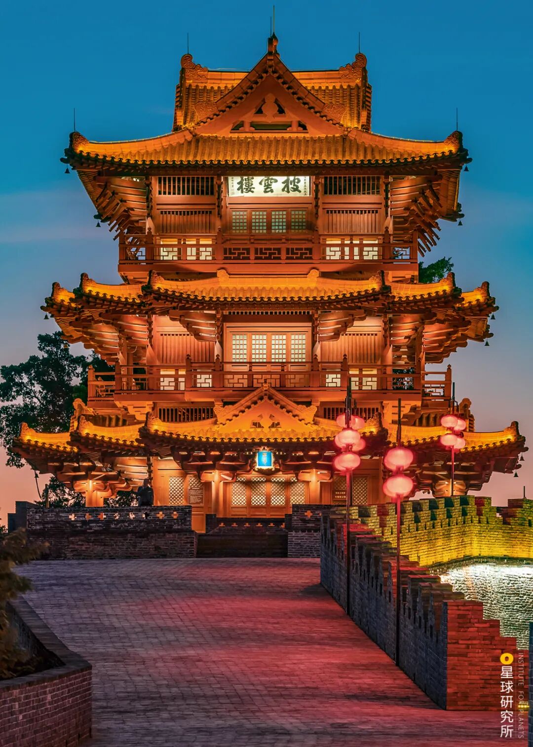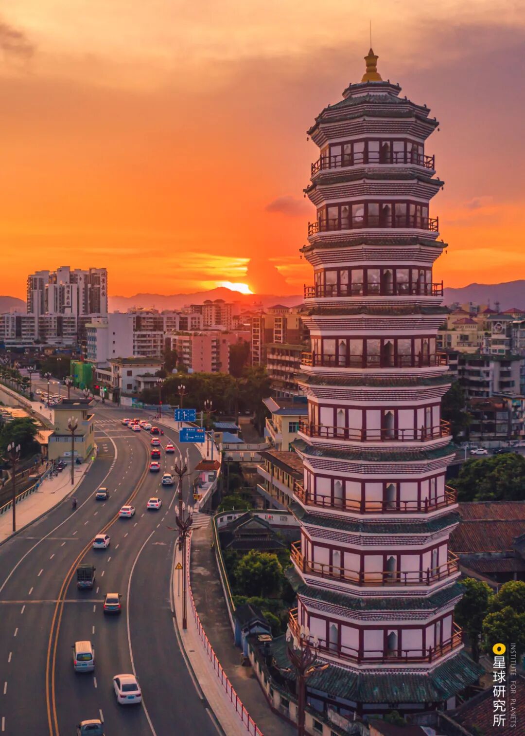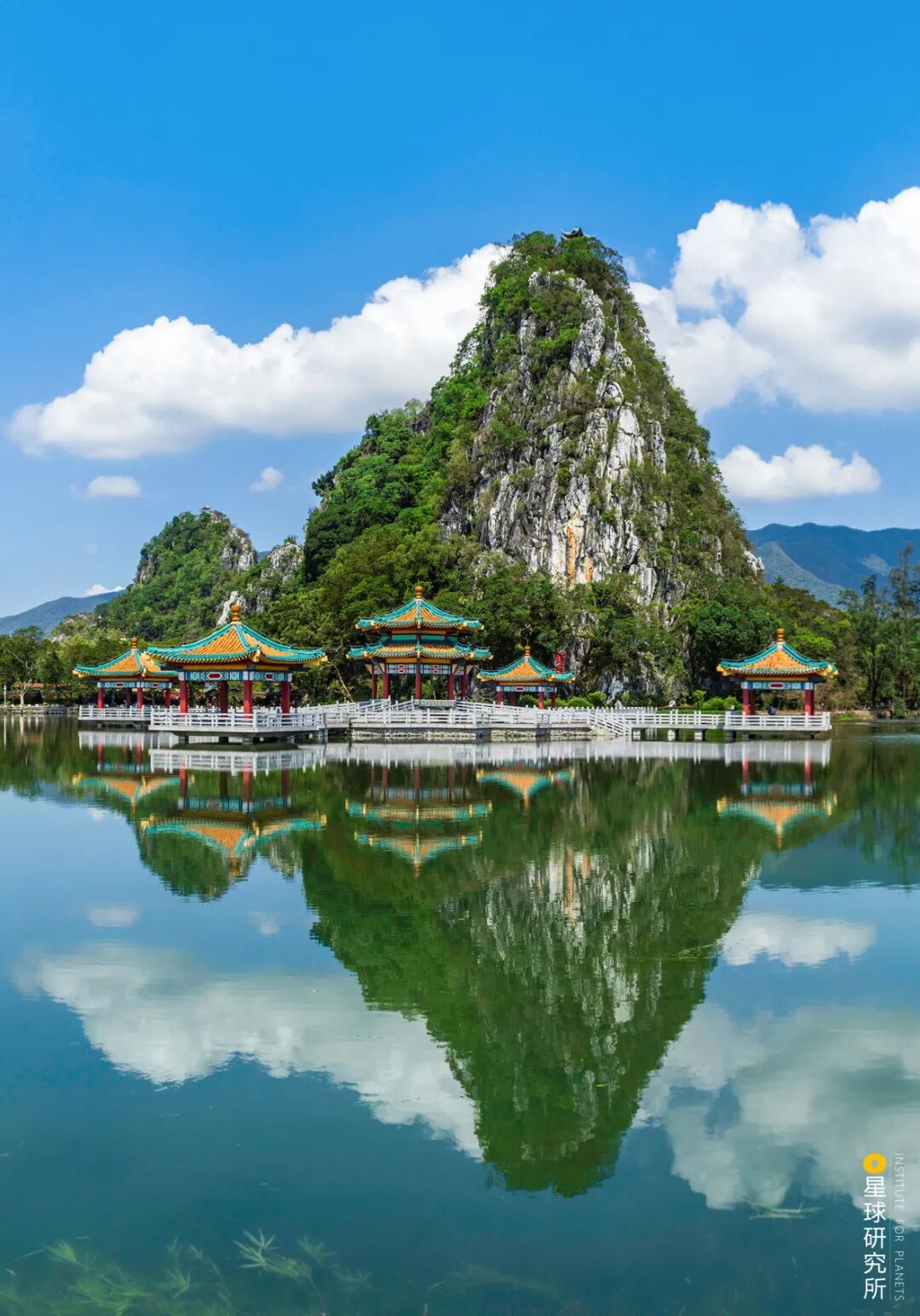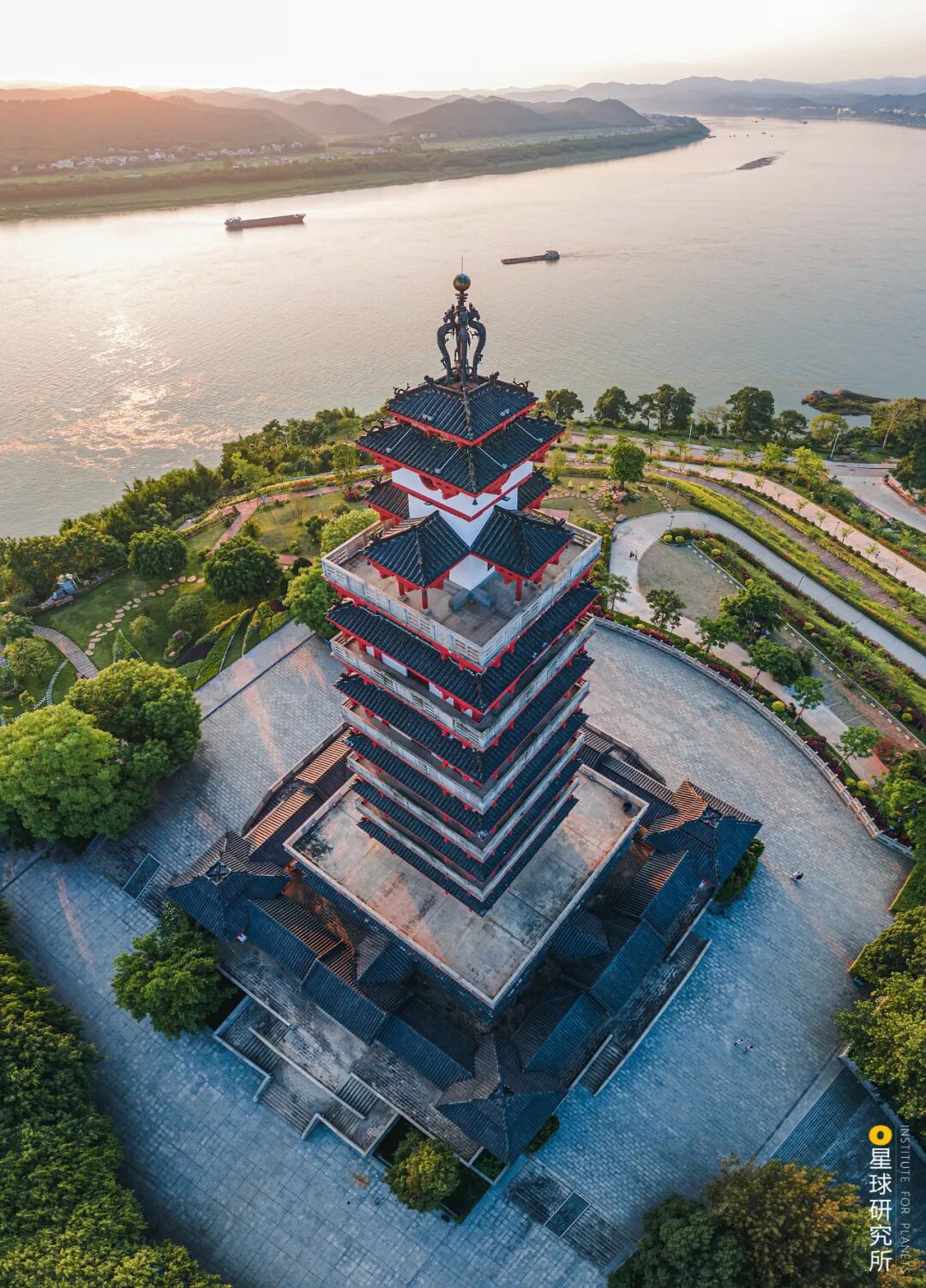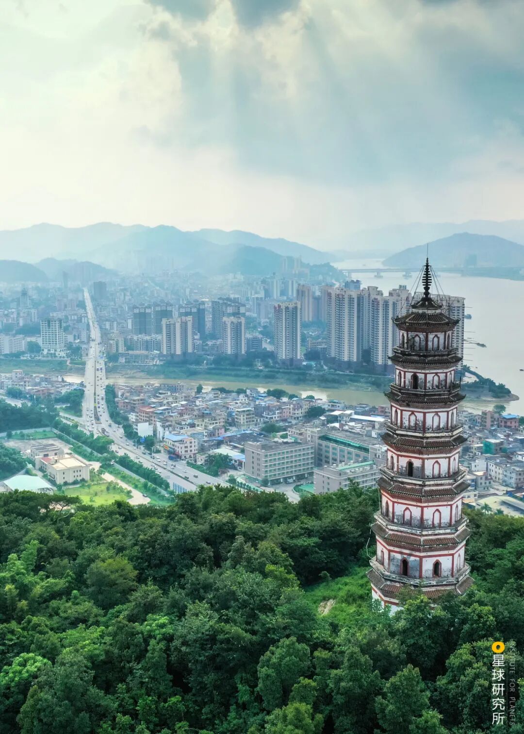 (肇庆德庆三元塔,距今已有400年历史,在青山绿水中仍鲜艳如昔,摄影师@卢文)