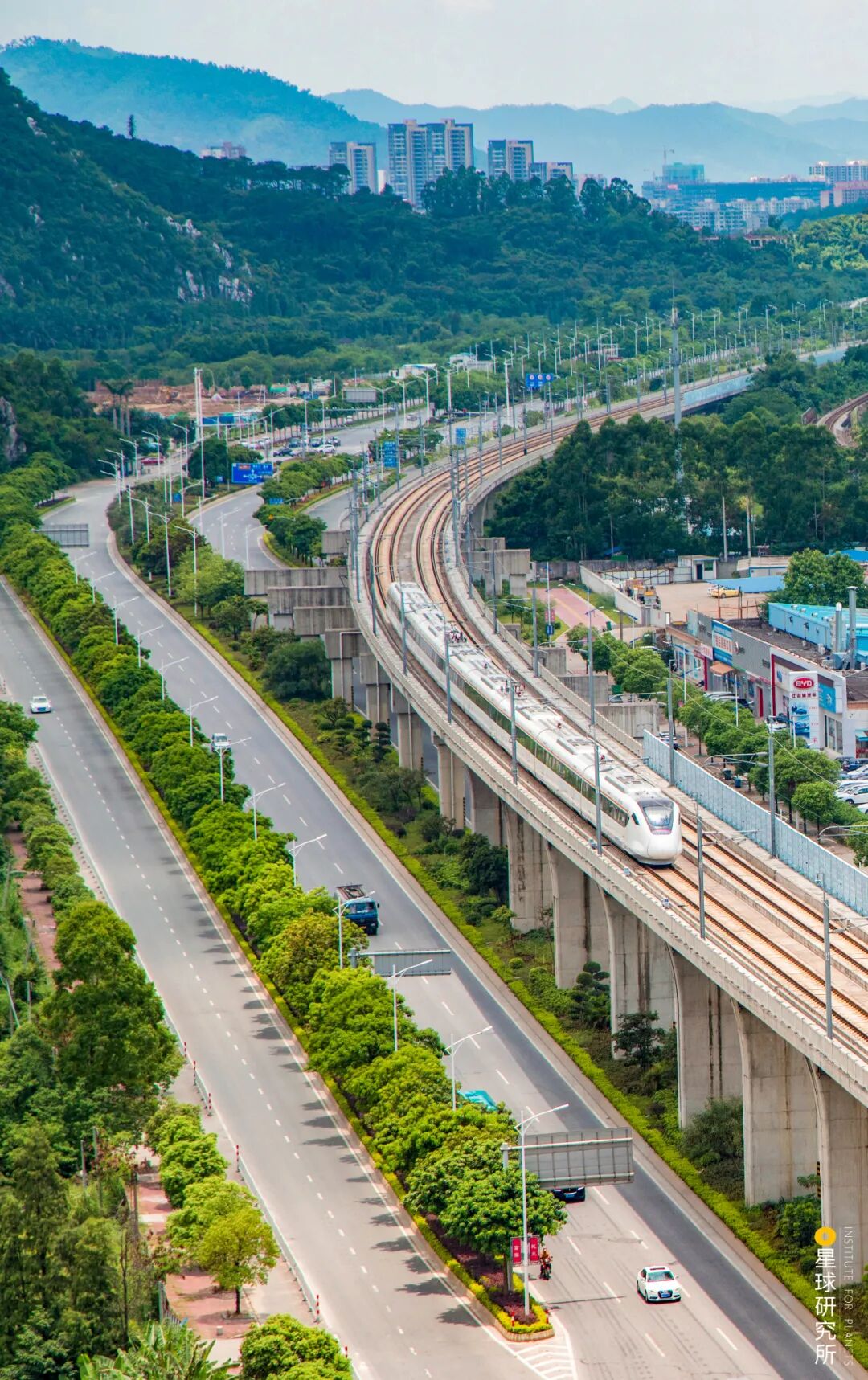 (广佛肇城际行驶在肇庆城区,摄影师@管俊鸿)