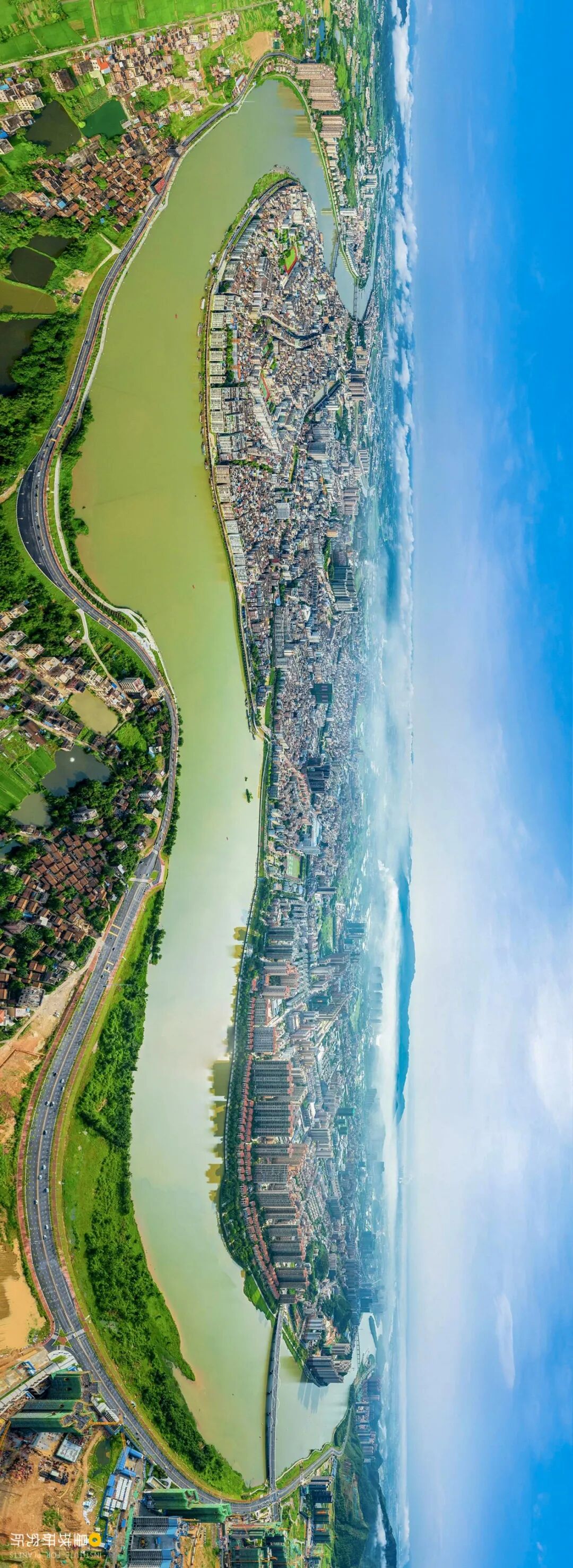 (请横屏观看,肇庆四会的山、江、城融为一体,摄影师@罗炳昆)