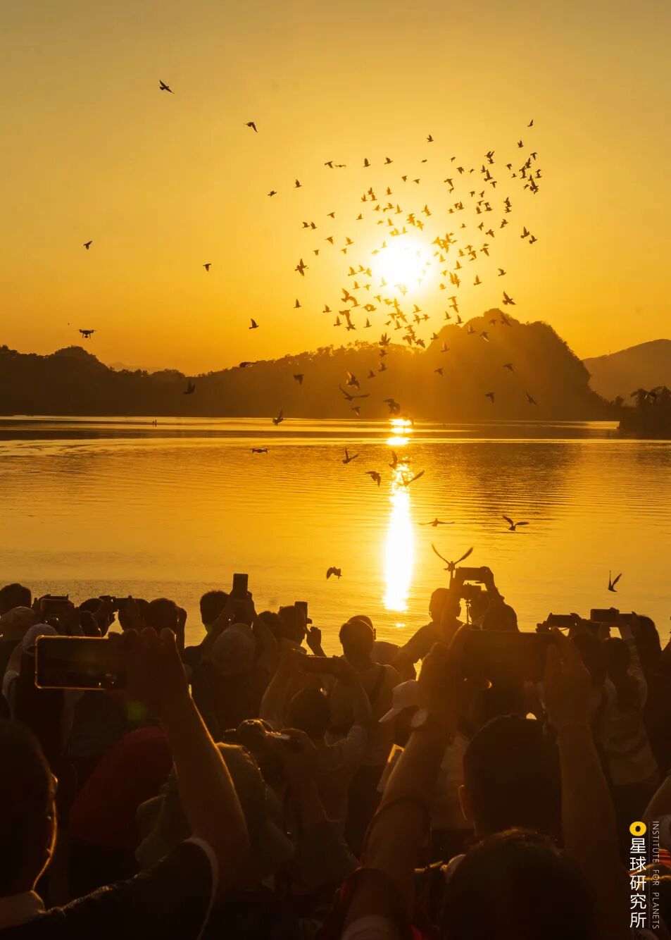 (“卧佛含丹”是肇庆七星岩的天象奇观,缓缓下坠的夕阳犹如落于“卧佛”口中,吸引众多游客围观,摄影师@吴勇强)