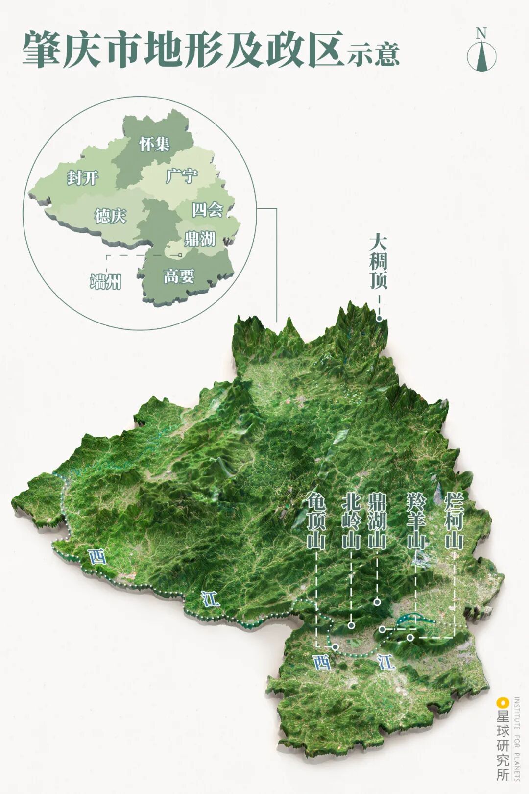 (肇庆市地形及行政区划示意,制图@泰山&杨宁/星球研究所)