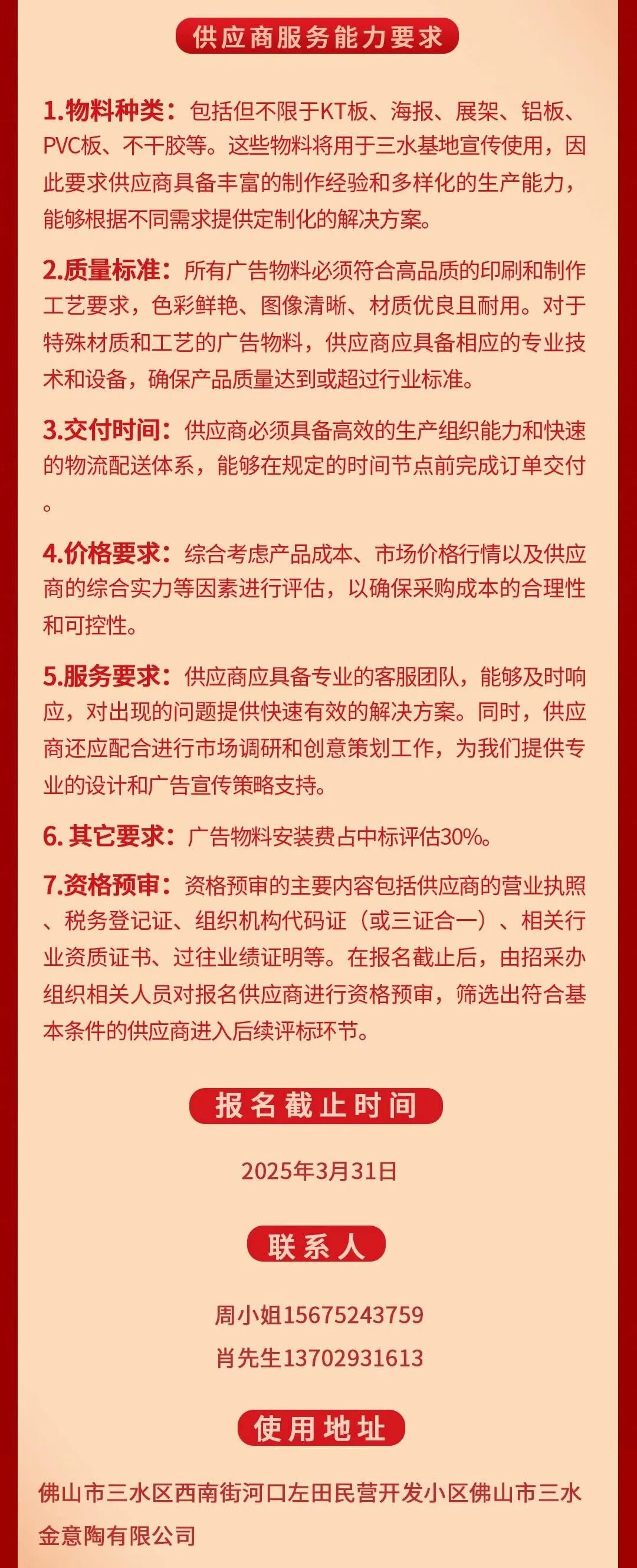 1、金意陶三水基地广告物料制作年度招标