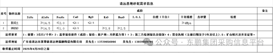 2.1、东鹏清远基地砂坭招标