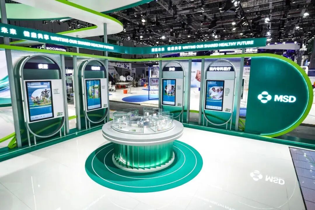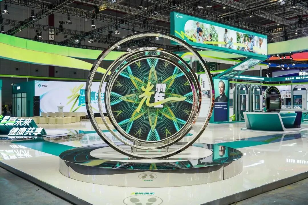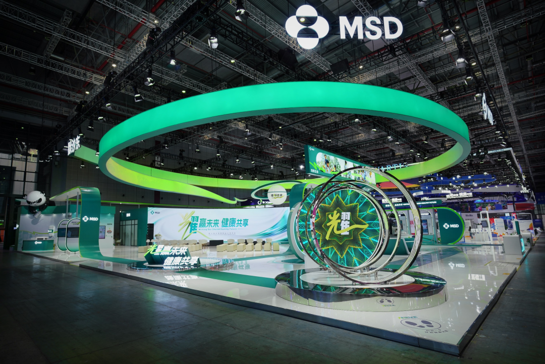 在本届进博会上,默沙东以“耀赢未来,健康共享”为主题,全方位展示默沙东在创新药品、在研管线、产业合作、社会责任、数字化等领域的突出成果。东展台整体以“生命飘带”为设计灵感,铺面的青柠绿带来跳动的活力生机,这是今年默沙东中国企业品牌形象焕新后,首次以全新的品牌视觉元素向公众亮相。飘带蜿蜒交织,串联起研发创新、前沿产品、产业合作等多个展区,不仅象征着生命的紧密联结,更彰显默沙东活力共赴健康未来的决心,绘制出一幅健康与希望绵延不绝的画卷。