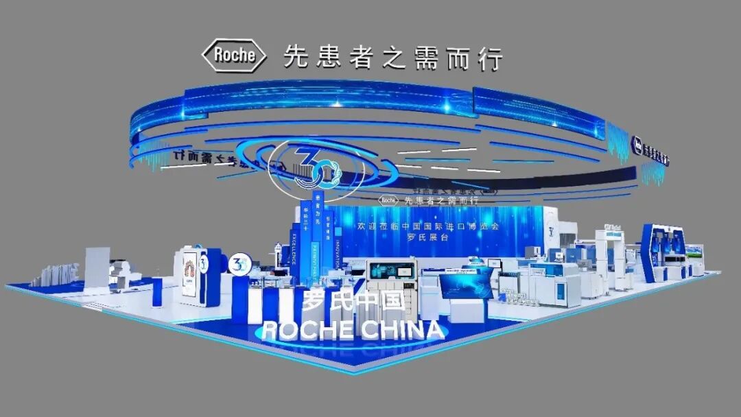 今年是罗氏制药在华成立三十周年,作为医疗器械及医药保健展区面积最大的展商之一,罗氏以“华彩三十,聚氏未来”为主题,在1000平方米的进博展台上全面展示超过30款已上市和即将在华上市的全产品矩阵及创新解决方案,重磅推出3款即将在华获批的全球创新产品。
