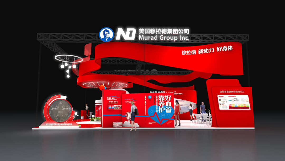 今年进博会,穆拉德新动力展台根据展览主题及设计理念,命名为“穆拉德中国红馆·生命之源”。展台以红色为主色调进行创意设计与组装,红色是中国红,也是血液的颜色,也代表着生命的无限活力与热情。血液是生命之源,整个展馆以血液的红色为主色调,寓意穆拉德新动力以诺奖科技一氧化氮与穆拉德非药血管精准健康管理守护血管健康,守护生命之源!