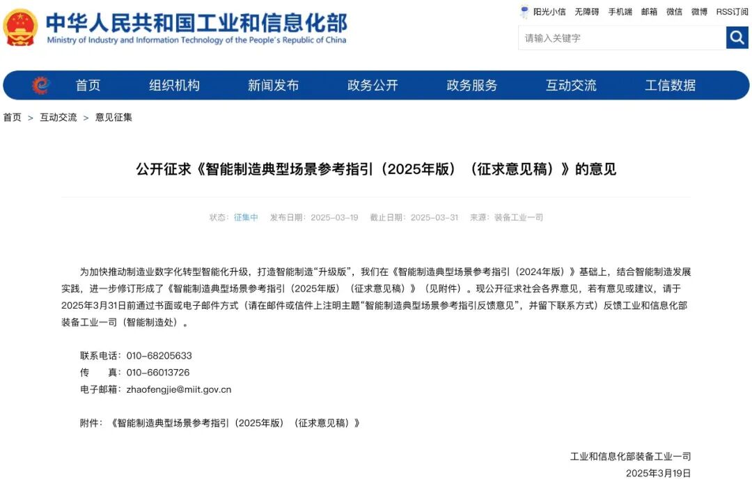 3月19日消息,工信部为加快推动制造业数字化转型智能化升级,打造智能制造“升级版”,在《智能制造典型场景参考指引(2024年版)》基础上,结合智能制造发展实践,进一步修订形成了《智能制造典型场景参考指引(2025年版)(征求意见稿)》(以下简称“意见稿”)。