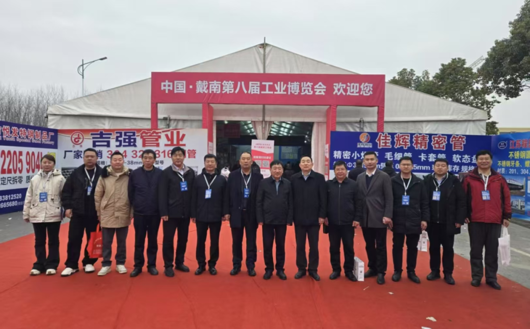 2月1日,农历正月初四,“聚力戴南 同心致远”为主题的中国戴南工业博览会在中国不锈钢名镇-兴化戴南隆重开幕。山东省不锈钢行业协会常务副会长、淄博伟业不锈钢有限公司董事长刘红卫,协会监事长、山东新世纪不锈钢集团董事长王华,协会理事单位-山东格益会展集团董事长张庆贺,江苏仁智不锈钢有限公司董事长伍祥东,泰州泰亮科技有限公司董事长朱思兵,协会秘书长王大中等分别陪同淄博市周村区委常委、副区长耿峰,临沂市莒南县副县长郑军等政府领导参观了2025戴南第八届工业博览会。一同感受不锈钢行业企业家们的创新创业情怀,见证不锈钢产业转型升级后的新气象。