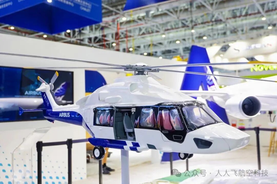 本次航展,空客直升机展出了一架轻型双发H135直升机,并在展台展示了新一代超中型H175直升机模型以及H160直升机全景任务模拟器。