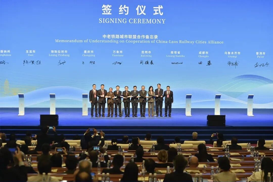 《中老铁路城市联盟合作备忘录》签约仪式现场 图源:央视新闻客户端