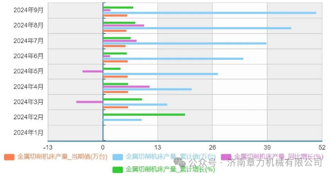 随着一揽子政策持续显效,推动经济回升向好的积极因素增多,市场需求逐步回暖、市场信心逐步提升,生产端的活跃性也在增强,金属切削机床和金属成形机床的产量全面恢复增长。例如,2024 年前三季度,规模以上装备制造业增加值同比增长 7.5%,新能源汽车、集成电路、锂电池、光伏等产量均保持两位数增长。工信部等相关部门发布的《推动工业领域设备更新实施方案》以及《“工业母机 +”百行万企产需对接活动实施方案》等政策,有力推动了工业母机市场需求持续扩大,加工中心、数控车床、数控磨床、锻压机械等金属加工机床应用领域广泛,更新需求大,产量实现快速增长。