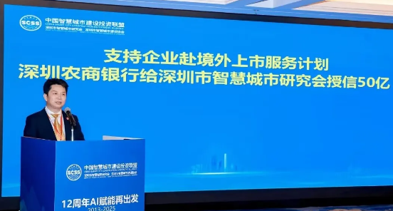 同时,由中国智慧城市建设投资联盟总秘书长\执行会长、傲盛(深圳)企业孵化有限公司董事长孙志光代表中智联理事会隆重发布“支持企业赴境外上市服务计划和深圳农商银行给深圳市智慧城市研究会授信50亿元”。