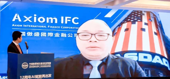 美国傲盛国际金融全球CEO吴励博士代表傲盛金融全球总部向大会发来视频祝福中智联大会圆满成功,合作共赢。