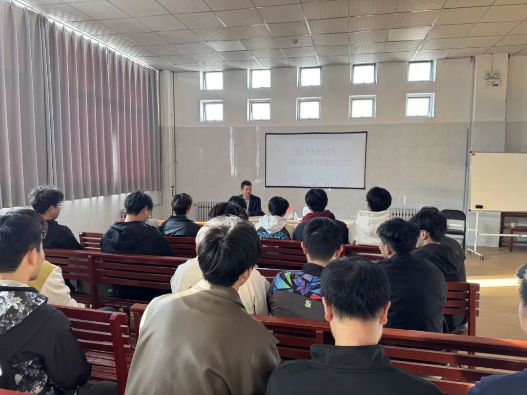副院长沈俊芳结合考研初试阶段情况,对学生给予殷切期望,鼓励同学们在最后的冲刺阶段坚定信念,保持良好的心态,合理规划复习时间。他指出,考研复试不仅是对专业知识的深度考核,更是对综合素质的全面考察。他祝愿每一位努力付出的同学都能得偿所愿,成功上岸,在研究生阶段继续深造,为实现自己的人生目标不懈奋斗。