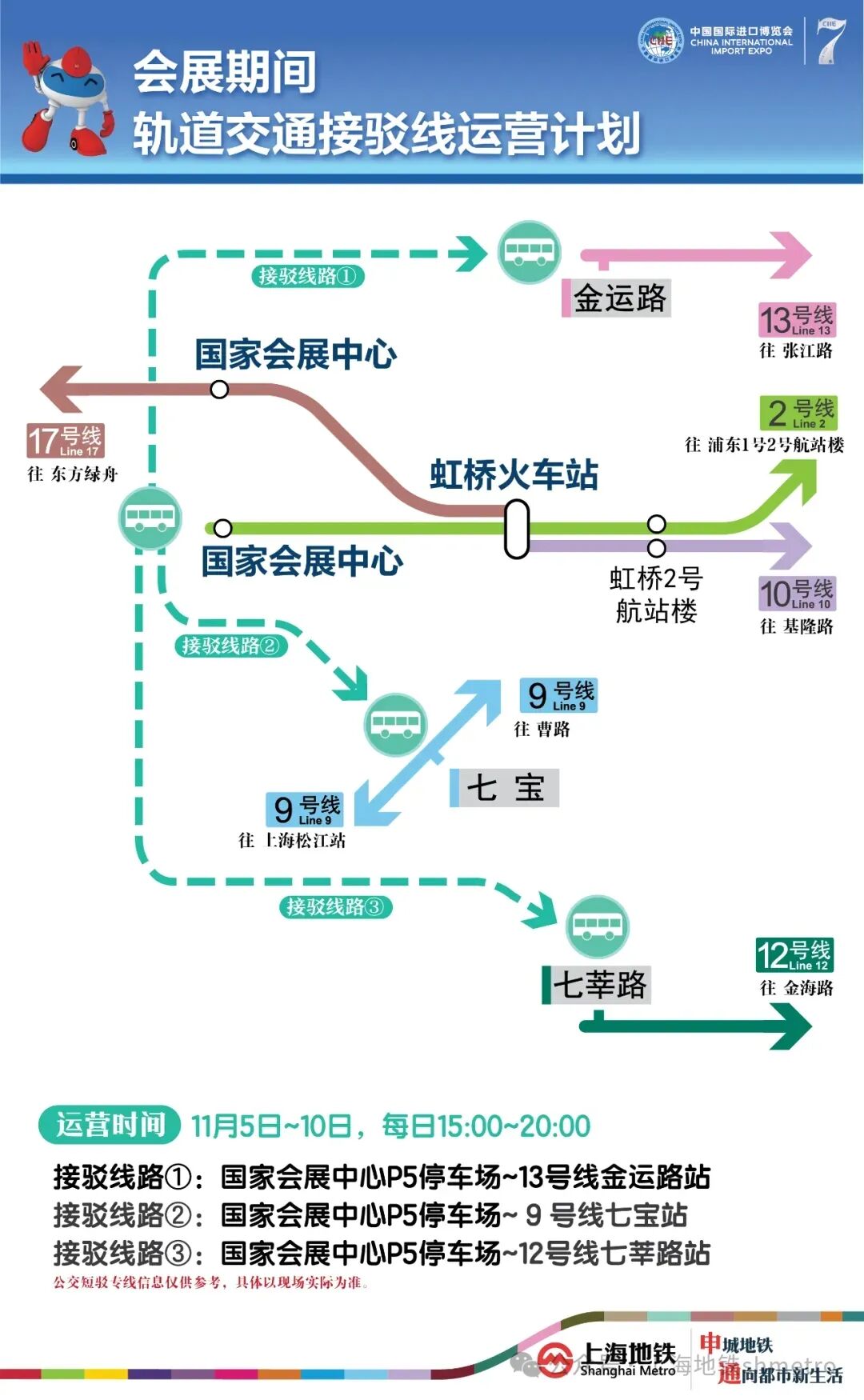 线路2:国展中心P5停车场—9号线七宝站;