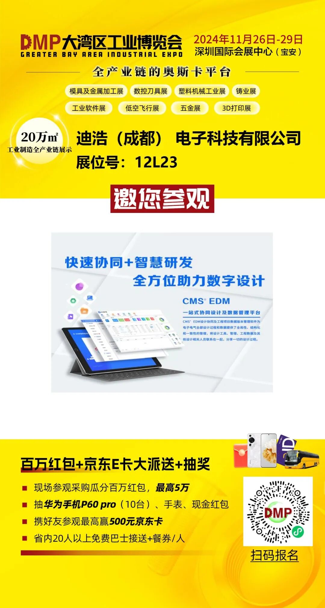 2024DMP大湾区工业博览会(以下简称“DMP工博会”),将于11月26-29日深圳国际会展中心(深圳宝安)举行!展会规模24万平方米,逾2200家头部制造企业将悉数亮相,30+场前瞻会议论坛赋能制造业年度大秀!