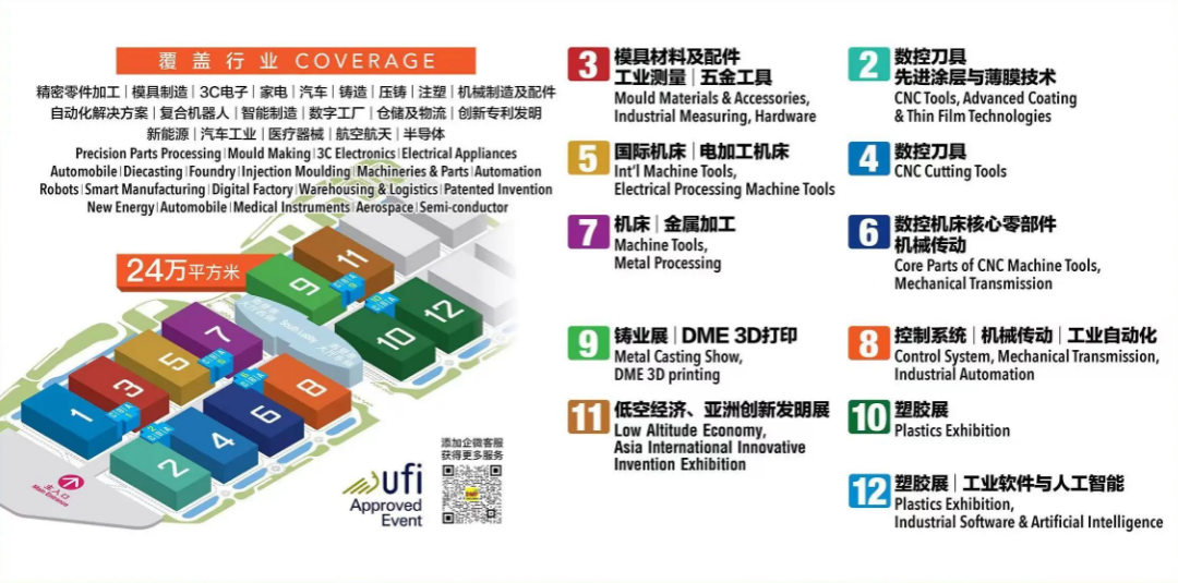本届展会将聚焦数控机床、刀具、工业机器人及自动化、塑胶及包装模具制造、工业测量、3D打印、精密零件、压铸及铸造、五金工具及材料等制造领域,覆盖智能制造、金属加工、塑料机械加工、新材料技术、工业软件与人工智能创新成果及优秀产品、数字中国低空飞行产业等制造全产业链打通上下游合作,来自工业制造领域的买家及观众将能在现场收获高价值合作商机。