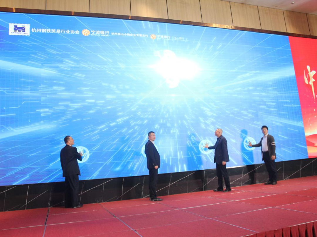 在活动现场,宁波银行杭州分行与杭州钢铁贸易行业协会共同发布"联名私银卡",集成专属金融服务、商旅出行、健康管理等多项权益。宁波银行杭州分行副行长许森、吴山支行行长孔均,杭州钢铁贸易行业协会会长魏春全、常务副会长黄英杰共同上台启动首发仪式。