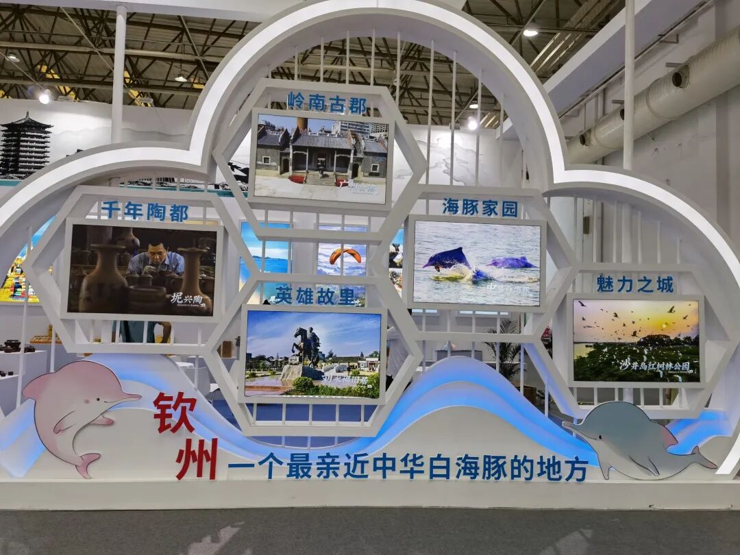 其中,钦州市以“钦近东盟 共赢之州”为主题搭建特装展位参展。展位突出文旅融合,通过展出优美的艺术形象以及一批钦州特色文化旅游产品,全方位展示钦州“岭南古郡、千年陶都、英雄故里、海豚家园、魅力之城”特点,并宣传钦州正实施的“建大港、壮产业、造滨城、美乡村”四轮驱动战略。