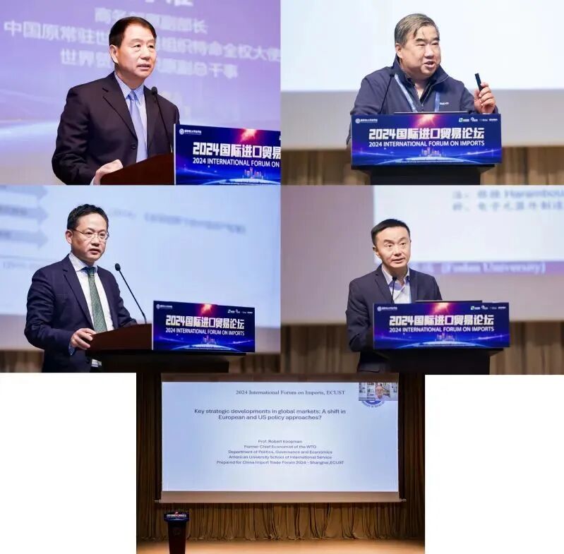 在第七届中国国际进口博览会开幕前夕,华东理工大学举办了2024国际进口贸易论坛。商务部原副部长、中国原常驻世界贸易组织特命全权大使、世界贸易组织原副总干事易小准,世界贸易组织前首席经济学家罗伯特·库普曼,联合国贸易和发展会议资深专家梁国勇,对外经贸大学原副校长林桂军,复旦大学文科科研处副处长罗长远等来自中国政府、国际组织、学界和业界的300余位专家学者参加了论坛。学校党委书记蒋传海出席会议并致辞,开幕式由党委常委、副校长阎海峰主持。
