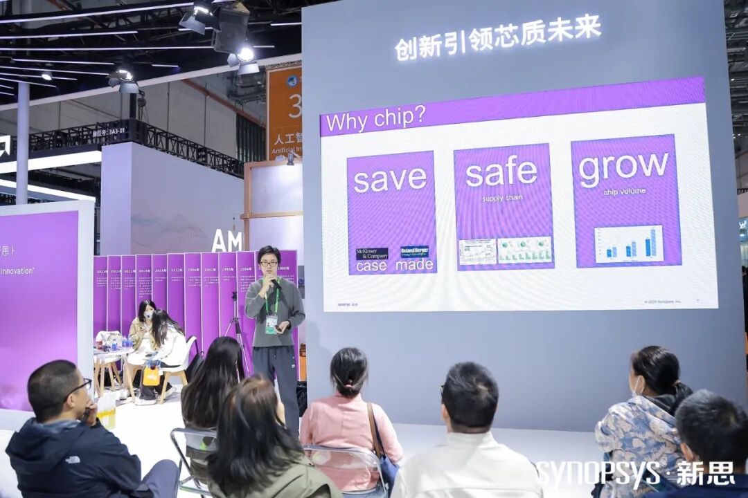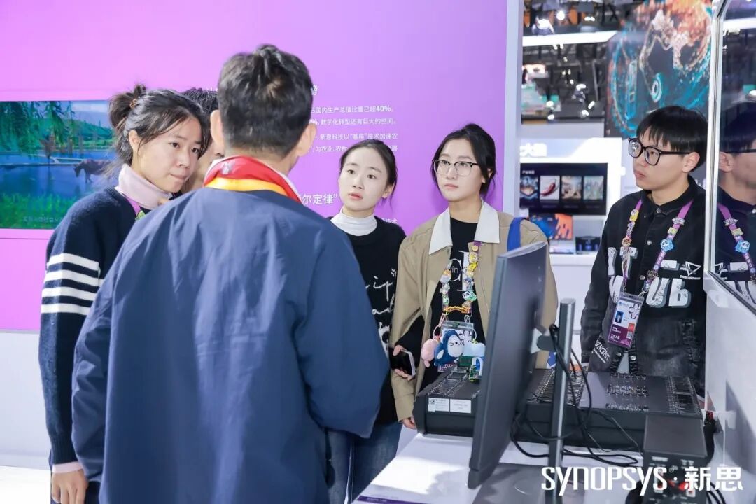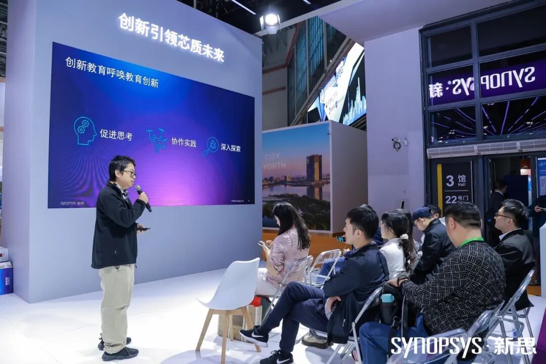 进博会期间,新思科技展台围绕“芯质未来”主题,举办了六大主题演讲,分享创新技术和理念。演讲主题涵盖芯力量推动未来医疗、K12 STEAM教育实践、EDA与AI融合、数据中心算力未来、智能汽车创新引擎及电子数字孪生在万物智能时代的应用。这些演讲不仅展现了新思科技在芯片技术创新与未来应用领域的深度探索,更传达出与开发者携手共创“芯质未来”,共谱科技新篇章的美好愿景。