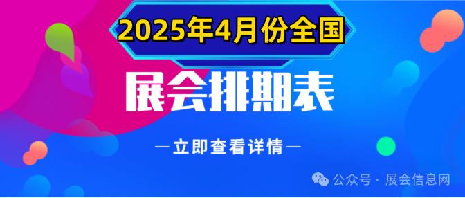 【2025年全国展讯】2025年4月份全国全行业展会信息(2025年全国4月全行业会展信息排期表第一弹)北京4月展会/广州4月展/北京4月展会/广州4月展会/上海4月展会/深圳4月展会/佛山4月展会/山东济南4月展会/青岛4月展会/临沂4月展会/潍坊4月展会/浙江义乌4月展会/宁波4月展会/台州4月展会/温州4月展会/绍兴4月展会/慈溪4月展会/厦门4月展会/福建福州4月展会/苏州4月展会/浙江杭州4月展会/重庆4月展会/成都4月展会/湖南长沙4月展会/河北石家庄4月展会/河南郑州4月展会/江苏南京4月展会/昆山4月展会/无锡4月展会/徐州4月展会/武汉4月展会/合肥4月展会/南昌4月展会/贵州4月展会/西安4月展会/海南4月展会/广西南宁4月展会/云南昆明4月展会/山西太原4月展会/天津4月展会/辽宁沈阳4月展会/大连4月展会/吉林长春4月展会/黑龙江哈尔滨4月展会/新疆4月展览会/2025年4月份全国全行业展览会