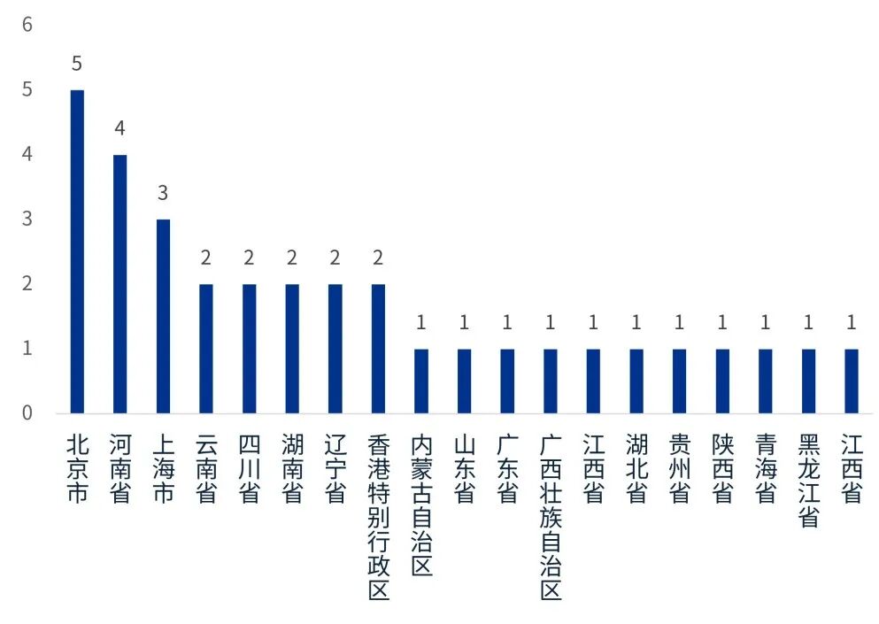 从地区来看,新增企业主要集中在泛珠三角地区(共18家,其中:广东,6家;云南、湖南,各3家;广西、福建、四川,各2家)和华北地区(共11家,其中:天津、河北,各3家;北京、山西,各2家;内蒙古,1家)。