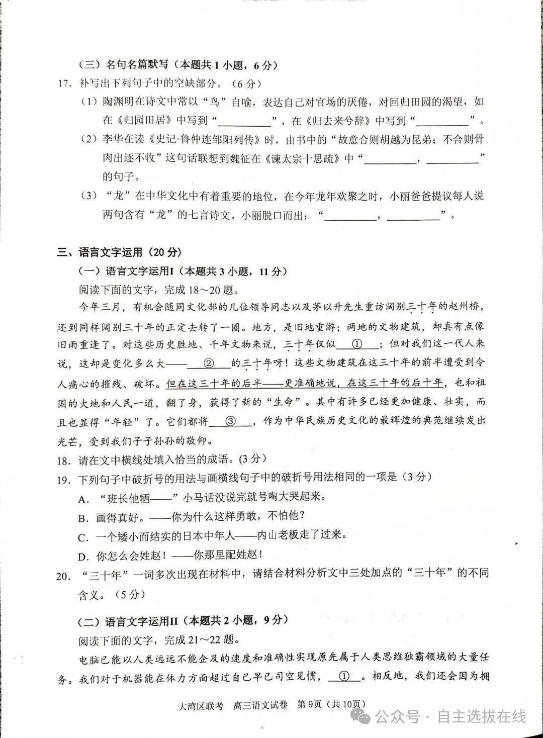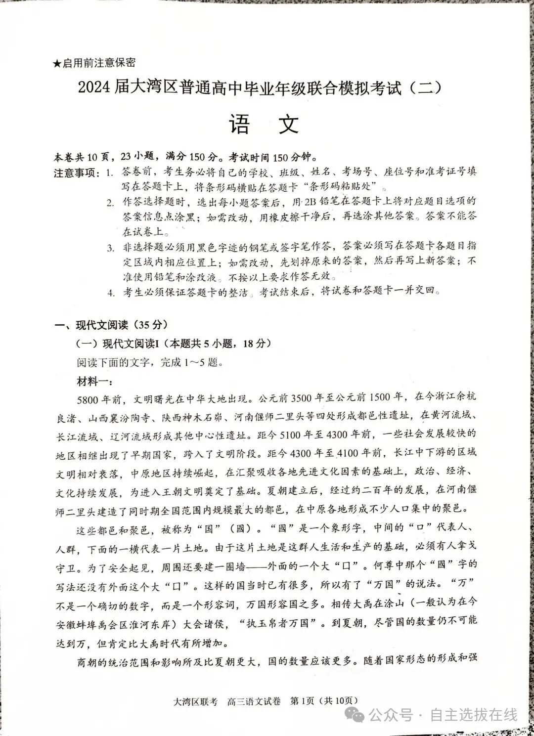 2024年广东省大湾区二模于近日开考,自主选拔在线团队整理了大湾区二模语文、数学等全科试题及答案(陆续更新),供大家下载练习,欢迎大家收藏+转发分享给更多人一起学习!