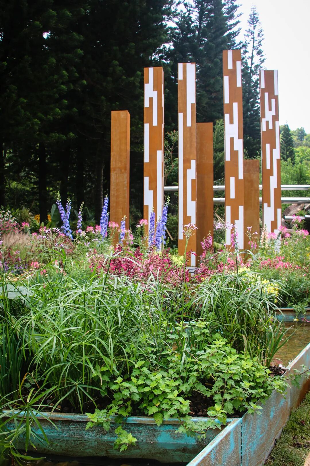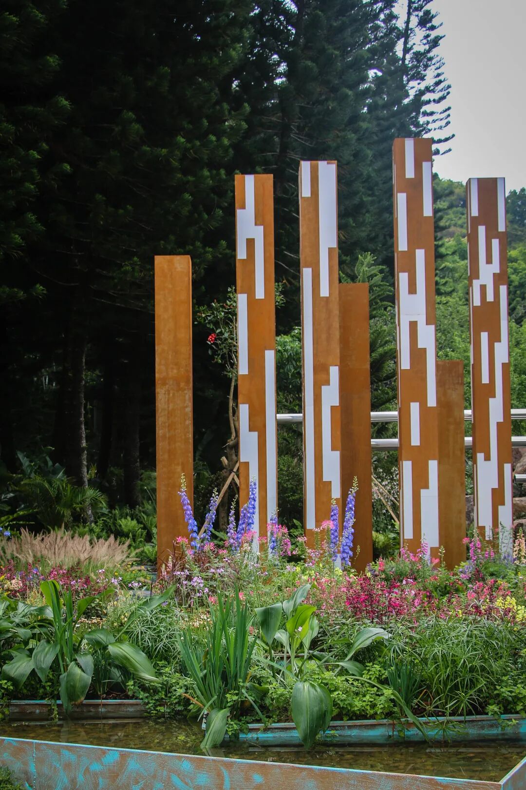 一座花园犹如一座城市的缩影。佛山园占地220㎡,依坡顺势而为。整园围绕“万简印正、花溪拥翠”的设计主题展开,运用佛山陶艺、铸造与现代花境相结合的生态造园手法营造。
