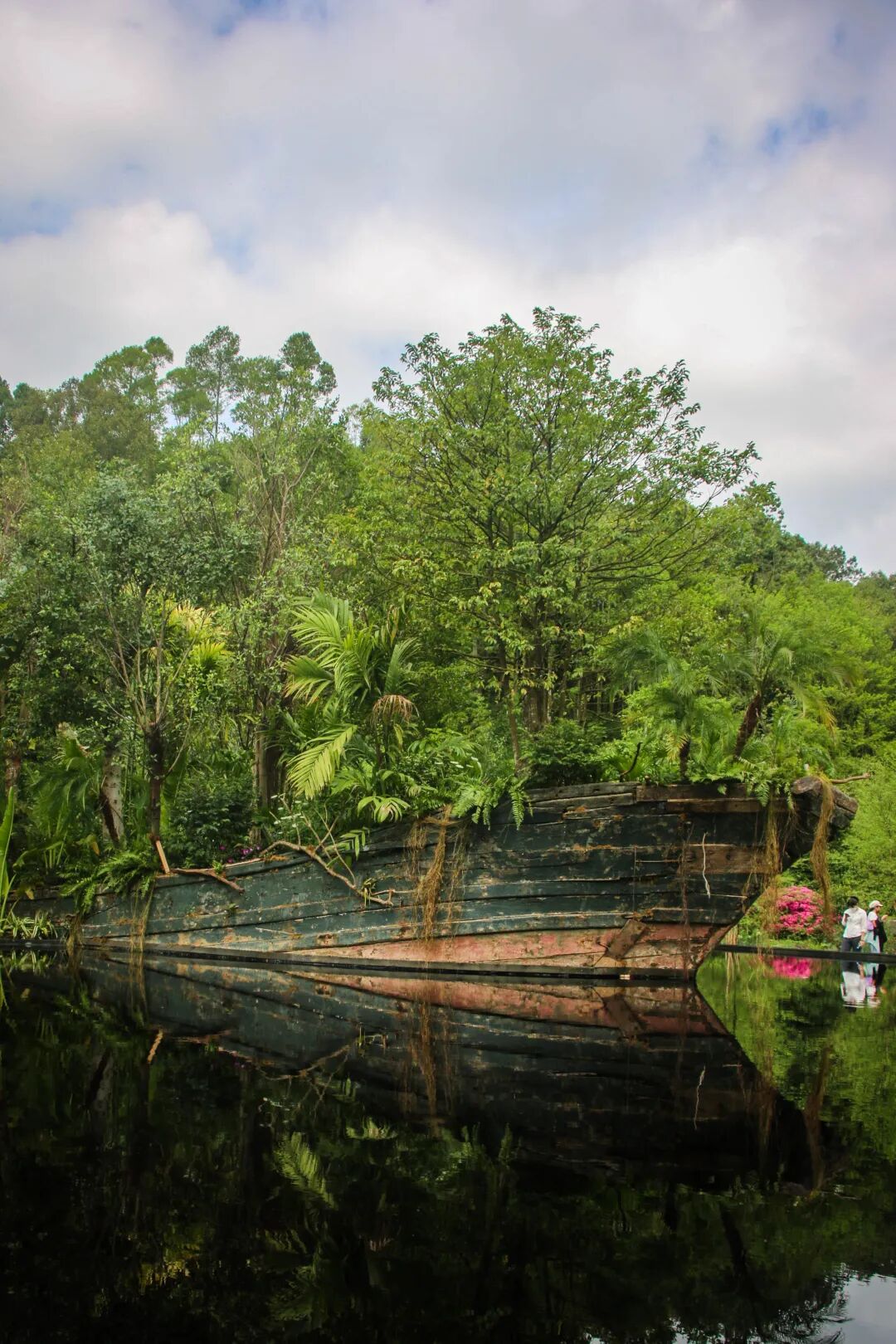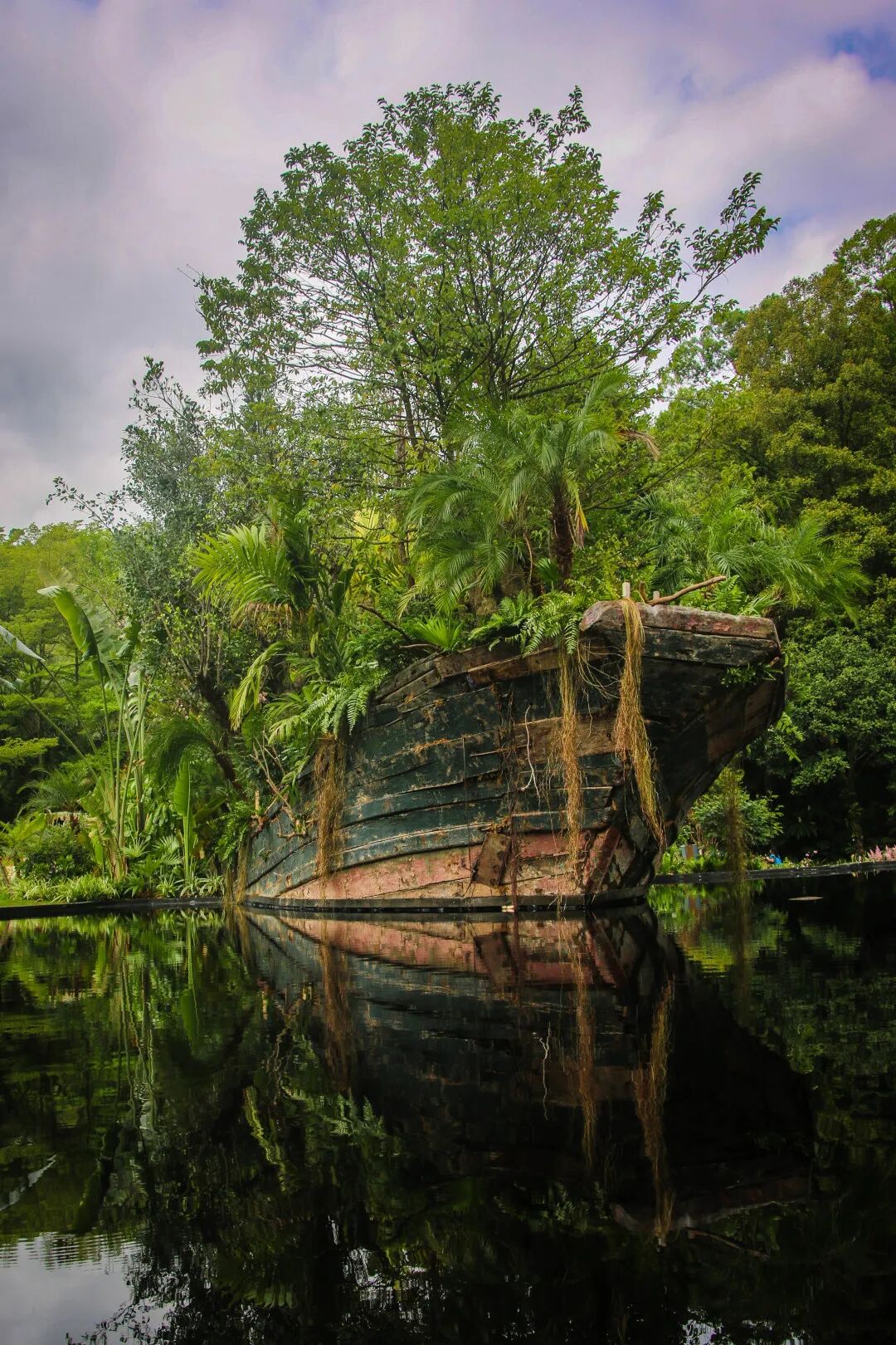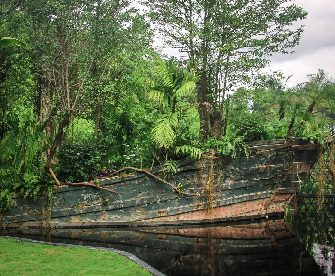 一艘废弃的沉船变成了一个郁郁葱葱的花园,它悬浮在水面,给游客带来视觉冲击,促使人们思考文明和进步与尊重自然世界之关系的未来