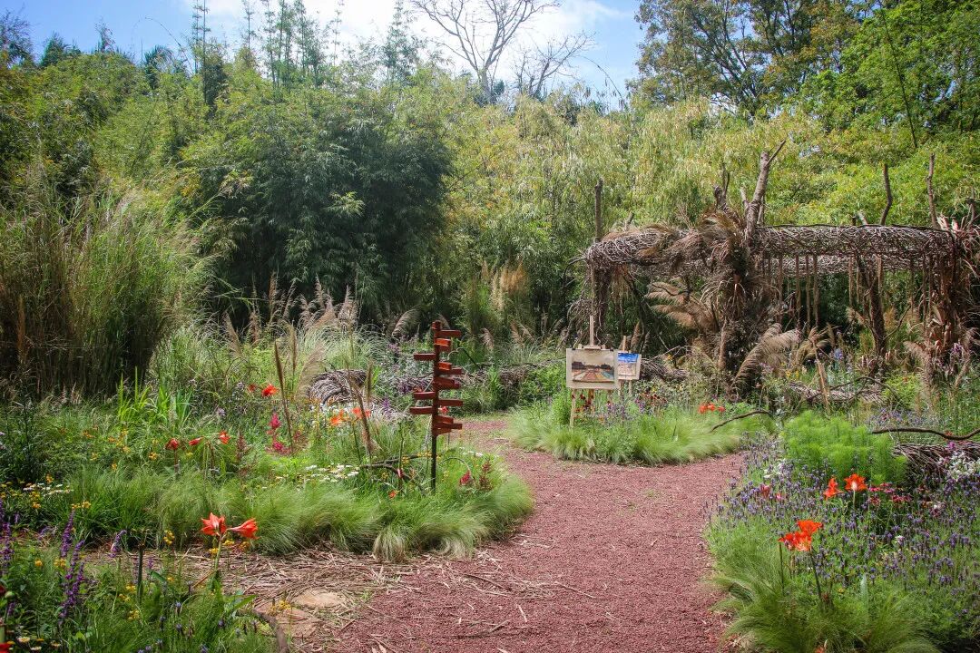 注重乡土植物应用,园中小径两侧的植物群落随着空间的转换不断变化,层次逐渐丰富,可视化表达植物固碳的意义和产生的生物多样性。
