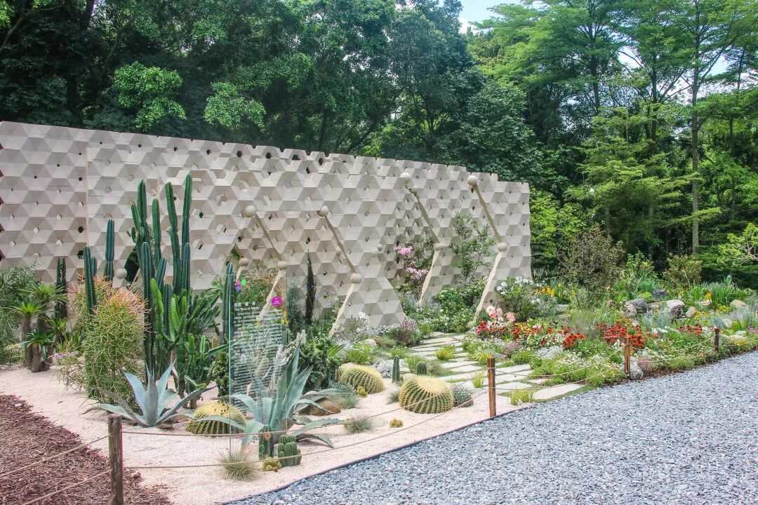 自然“碳”寻花园以“碳”为线索,表达深圳基于自然实现碳中和的城市决心。碳元素的基本形态组成不同的景观要素,园的建造材料均为自然的材料景墙、装置、座凳均以纸浆为原料,3D打印而成
