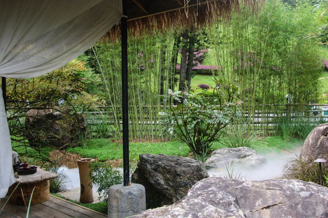 于山野之中设一茶寮,竹松山石为临,草木之间,独尘冥想,自然之气修于身。