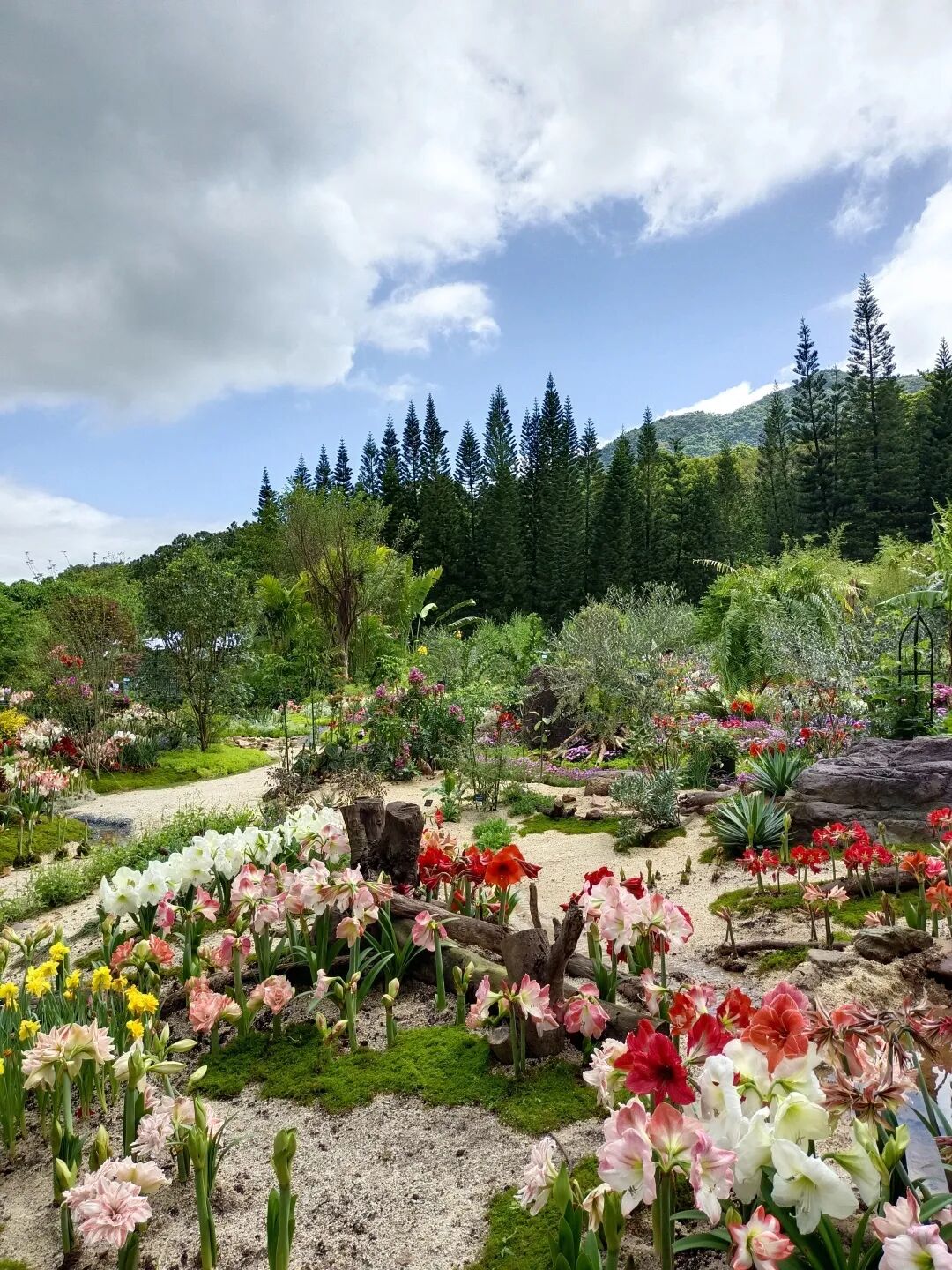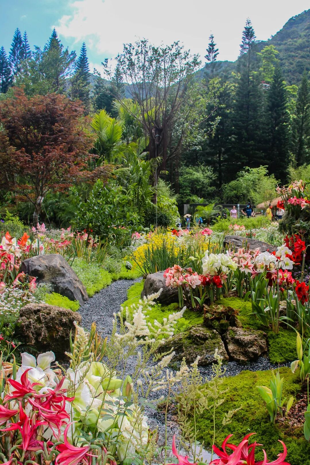 此为本届花展的主题花园,占地面积1000平方米。整体平面布局模拟珠江三角洲鸟瞰画面,通过地形整理,植物配植,呈现大湾区一幅生机盎然的春日图画