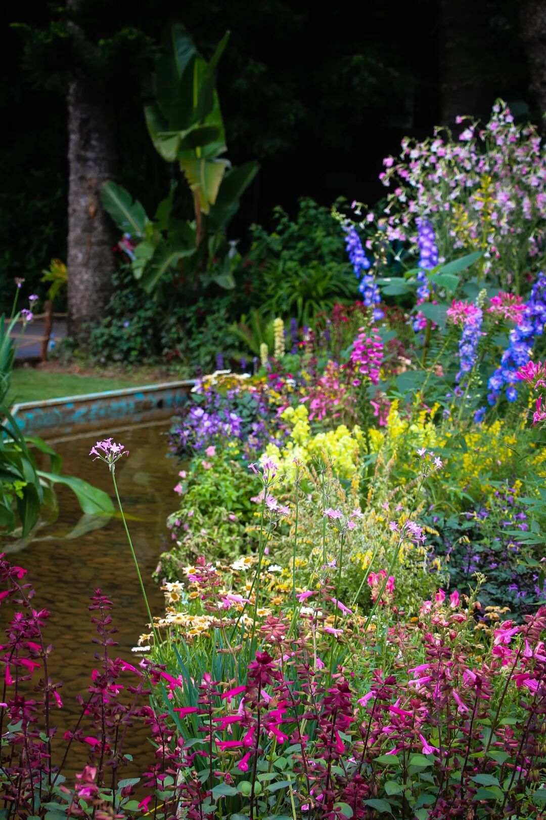 水池可从景观中收集径流和雨水以循环使用,体现清洁的淡水对人类生存至关重要。由水池延伸出的河道两旁,布满色彩缤纷的多年生植物,表明因地制宜栽培植物可以让人们在享受园艺活动和色彩的同时呵护环境。