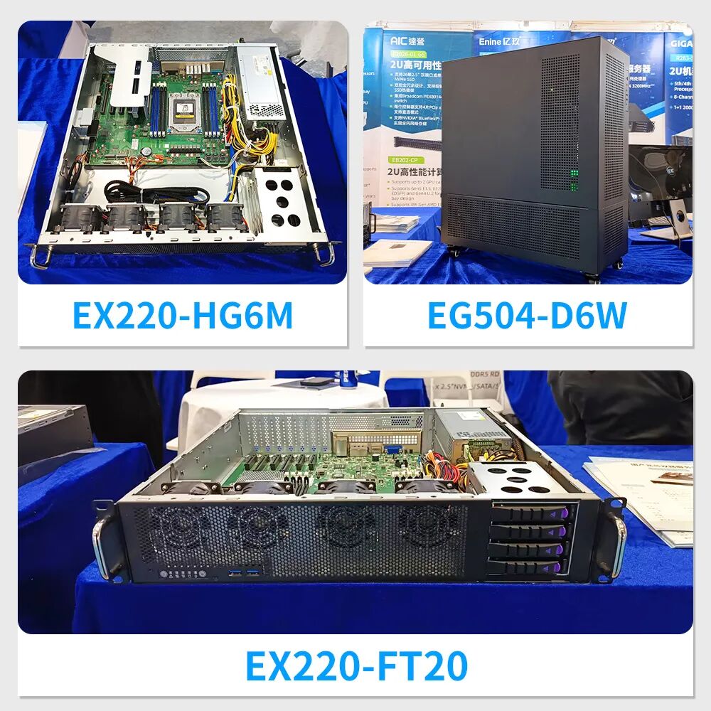 此外,Enine亿玖还推出了4GPU液冷工作站EG504-D6W,配备4张高性能GPU计算显卡及先进液冷散热系统,专为3D建模、图像渲染等高性能计算领域打造,提供非凡的图形处理与计算能力。同时,国产飞腾服务器EX220-FT20,搭载国产操作系统,全面满足国产化信息安全需求,是金融、信息安全、数据存储、监控安防及公检法系统的理想选择。